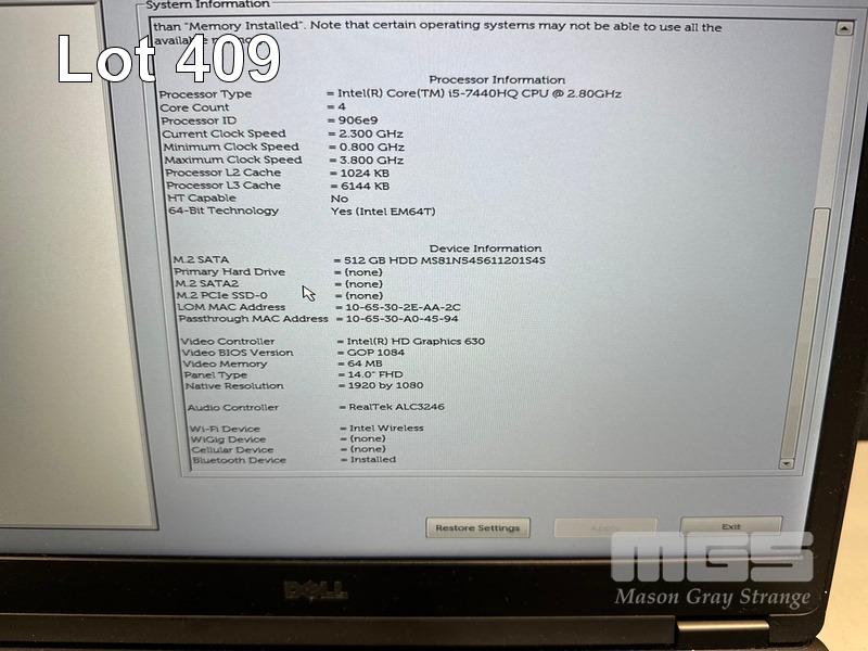 LAPTOP, DELL LATITUDE 5480, CORE i5 7440HQ (7TH GEN) @ 2.8GHz, 8GB DDR4 RAM, 512GB M.2 SSD, 14" WIDESCREEN (1920x1080), INTEL HD GRAPHICS 630, Wi-Fi, BLUETOOTH, WINDOWS 10 HOME INSTALLED & POWER SUPPLY S/N:1RV6QN2