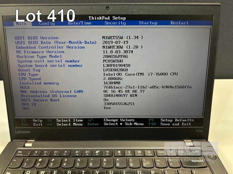LAPTOP, LENOVO THINKPAD T470s, TYPE 20HG, CORE i7 7600U (7TH GEN) @ 2.8GHz, 16GB DDR4 RAM, 512GB NVMe M.2 SSD, 14" TOUCHSCREEN (1920x1080), INTEL HD VIDEO, Wi-Fi, BLUETOOTH, WINDOWS 10 PRO INSTALLED & POWER SUPPLY (NOTE: MARKS ON SCREEN) S/N:PC0SWSUU