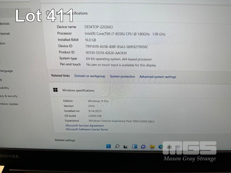 LAPTOP, TOSHIBA TECRA A50-E, CORE i7 8550U (8TH GEN) @ 1.8GHz, 16GB DDR4 RAM, 512GB SSD, DVD-RW, 15.6" WIDESCREEN (1920x1080), Wi-Fi, BLUETOOTH, WINDOWS 11 PRO INSTALLED & POWER SUPPLY (NOTE: MARKS ON SCREEN) S/N:6J181196H