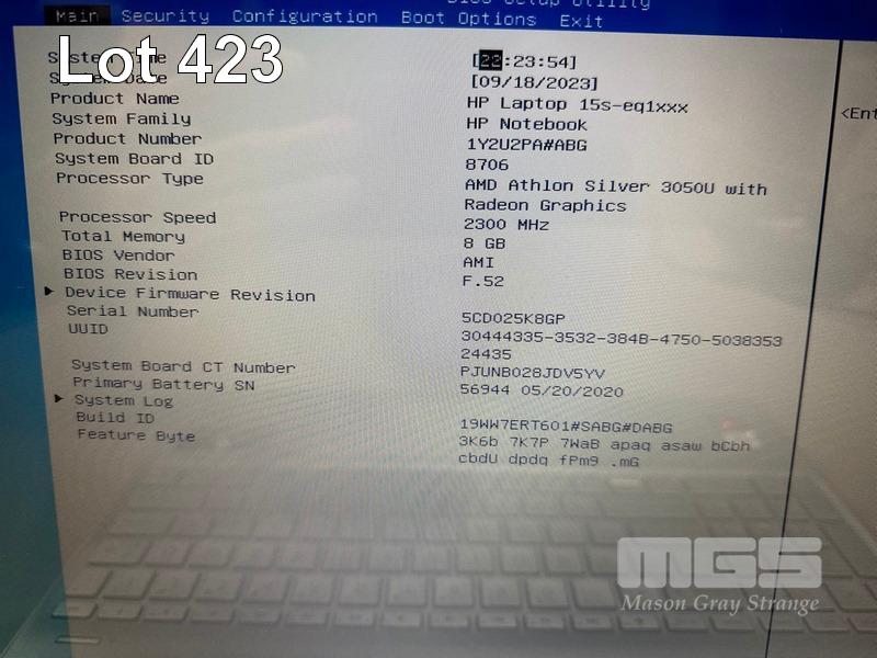LAPTOP, HP 15s-eq0126AU, AND ATHLON SILVER 3050U @ 2.3GHz, 8GB DDR4 RAM, 128GB NVMe M.2 SSD, 15.6" WIDESCREEN (1366x768), Wi-Fi, BLUETOOTH, WINDOWS 11 HOME INSTALLED & POWER SUPPLY S/N:5CD025K8GP