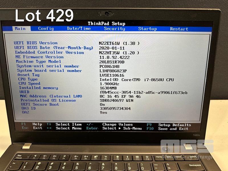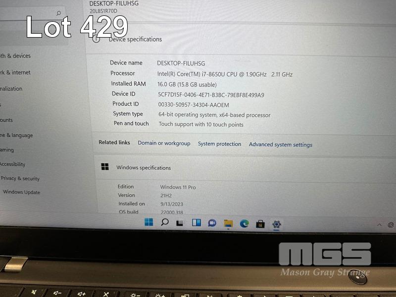 LAPTOP, LENOVO THINKPAD T480s, TYPE 20L8, CORE i7 8650U (8TH GEN) @ 1.9GHz, 16GB DDR4 RAM, 512GB NVMe M.2 SSD, 14" TOUCHSCREEN (1920x1080), INTEL HD VIDEO, Wi-Fi, BLUETOOTH, WINDOWS 11 PRO INSTALLED (NO USB-C POWER SUPPLY) (NOTE: MINOR MARKS ON SCREEN) S/N:PC0X61H8