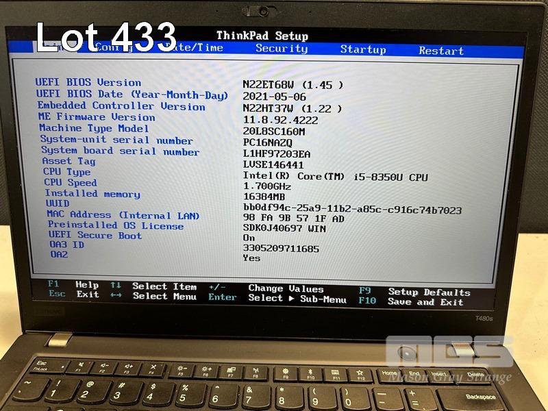 LAPTOP, LENOVO THINKPAD T480s, TYPE 20L8, CORE i5 8350U (8TH GEN) @ 1.7GHz, 16GB DDR4 RAM, 500GB NVMe M.2 SSD, 14" TOUCHSCREEN (1920x1080), INTEL HD VIDEO, Wi-Fi, BLUETOOTH, WINDOWS 11 PRO INSTALLED (NO USB-C POWER SUPPLY) (NOTE: MINOR MARKS ON SCREEN) S/N:PC16NAZQ