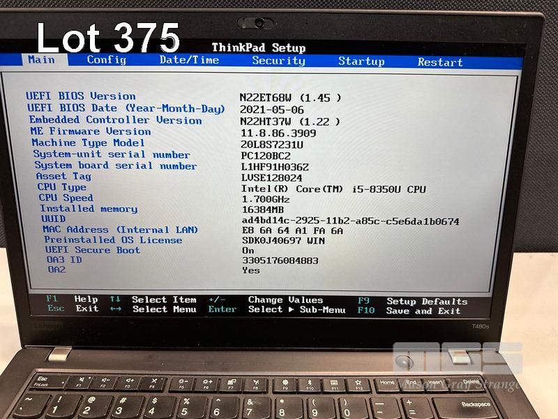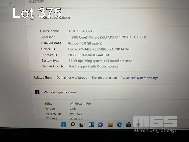 LAPTOP, LENOVO THINKPAD T480s, TYPE 20L8, CORE i5 8350U (8TH GEN) @ 1.7GHz, 16GB DDR4 RAM, 256GB NVMe M.2 SSD, 14" TOUCHSCREEN (1920x1080), INTEL HD VIDEO, Wi-Fi, BLUETOOTH, WINDOWS 11 PRO INSTALLED (NO USB-C POWER SUPPLY) (NOTE: MINOR MARKS ON SCREEN) S/N:PC120BC2