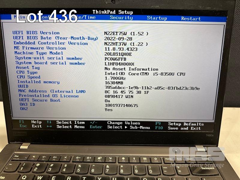 LAPTOP, LENOVO THINKPAD T480s, TYPE 20L8, CORE i5 8350U (8TH GEN) @ 1.7GHz, 16GB DDR4 RAM, 256GB NVMe M.2 SSD, 14" TOUCHSCREEN (1920x1080), INTEL HD VIDEO, Wi-Fi, BLUETOOTH, WINDOWS 11 PRO INSTALLED (NO USB-C POWER SUPPLY) (NOTE: MINOR MARKS ON SCREEN) S/N:PC0W6FFB
