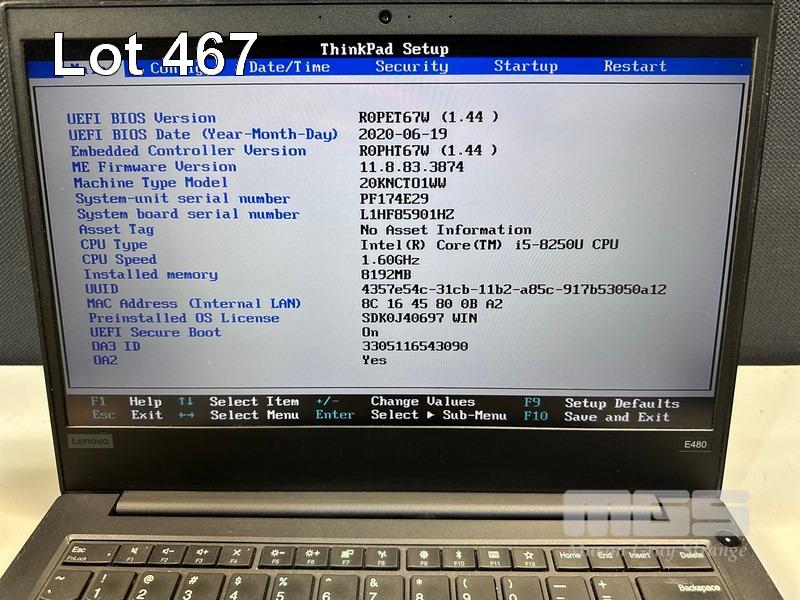 LAPTOP, LENOVO THINKPAD E480, TYPE 20KN, CORE i5 8250U (8TH GEN) @ 1.6GHz, 8GB DDR4 RAM, 256GB NVMe M.2 SSD, 14" WIDESCREEN (1920x1080), INTEL HD VIDEO, Wi-Fi, BLUETOOTH, WINDOWS 11 PRO INSTALLED & USB-C POWER SUPPLY (NOTE: TOUCHPAD WORN, MINOR MARKS ON SCREEN) S/N:PF174E29