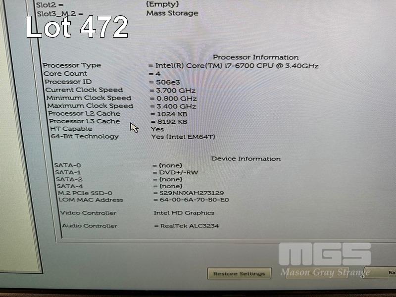 DESKTOP PC, DELL OPTIPLEX 7040 SFF, CORE i7 6700 (6TH GEN) @ 3.4GHz, 16GB DDR4 RAM, 256GB NVMe M.2 SSD, DVD-RW, INTEL HD VIDEO, WINDOWS 10 HOME INSTALLED (NO KEYBOARD, NO MOUSE) S/N:9DX7YC2