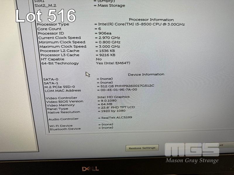ALL-IN-ONE PC, DELL OPTIPLEX 7460, CORE i5 8500 (8TH GEN) @ 3GHz, 8GB DDR4 RAM, 512GB NVMe M.2 SSD, INBUILT 23.8" FHD WIDESCREEN (1920x1080), INTEL HD VIDEO, WEBCAM, 5 x USB, 1 x USB-C, WINDOWS 11 HOME INSTALLED, KEYBOARD & MOUSE (NOTE: SMALL SCRATCH ON SCREEN) S/N:FC2DHY2