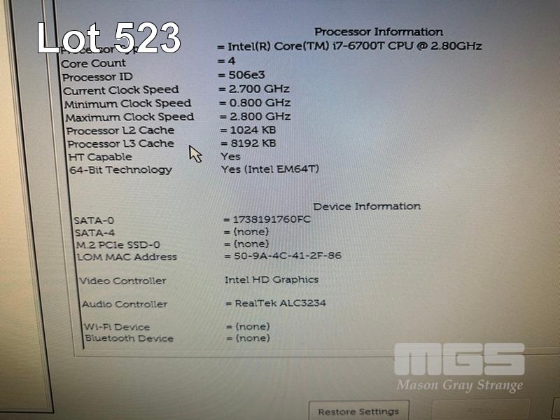 DESKTOP PC, DELL OPTIPLEX 7040 MICRO, CORE i7 6700T (6TH GEN) @ 2.8GHz, 16GB DDR4 RAM, 512GB SSD, INTEL HD VIDEO, 6 x USB, WINDOWS 10 HOME INSTALLED (NO POWER SUPPLY, NO KEYBOARD, NO MOUSE) S/N:80GF2K2