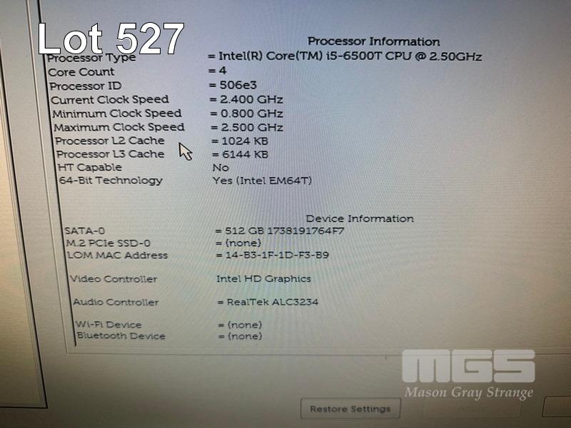DESKTOP PC, DELL OPTIPLEX 3050 MICRO, CORE i5 6500T (6TH GEN) @ 2.5GHz, 8GB DDR4 RAM, 512GB SSD, INTEL HD VIDEO, 6 x USB, WINDOWS 10 HOME INSTALLED (NO POWER SUPPLY, NO KEYBOARD, NO MOUSE) S/N:8RWQ9M2