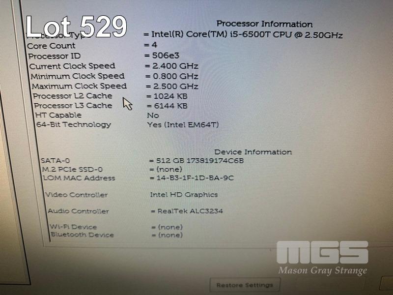 DESKTOP PC, DELL OPTIPLEX 3050 MICRO, CORE i5 6500T (6TH GEN) @ 2.5GHz, 8GB DDR4 RAM, 512GB SSD, INTEL HD VIDEO, 6 x USB, WINDOWS 10 HOME INSTALLED (NO POWER SUPPLY, NO KEYBOARD, NO MOUSE) S/N:8RSN9M2