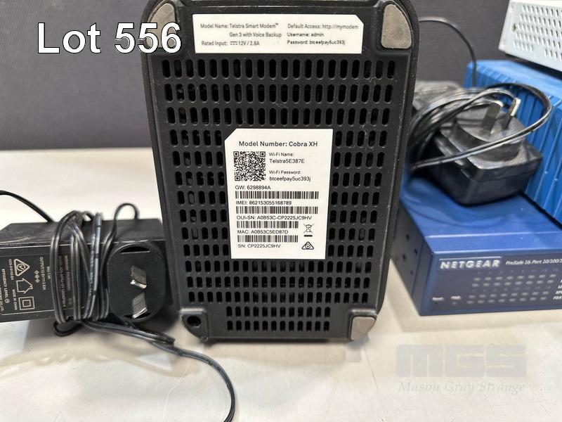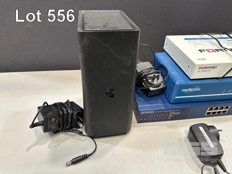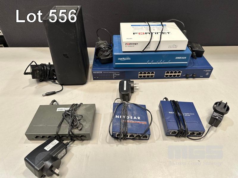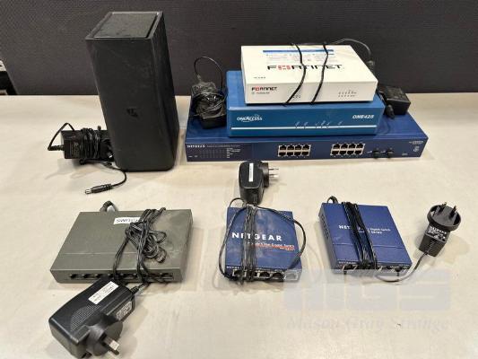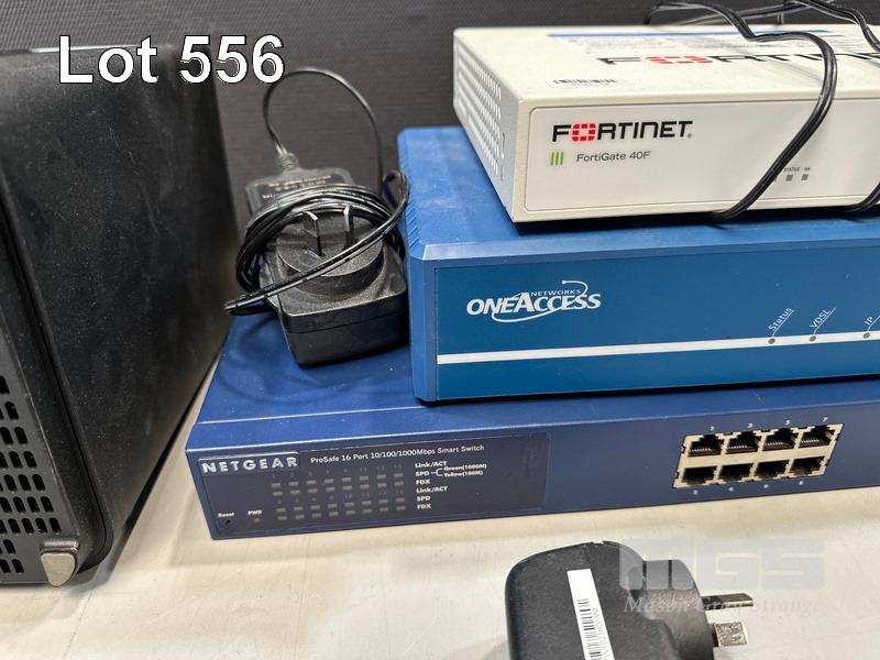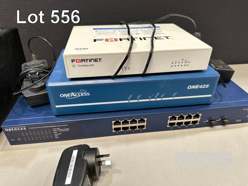 FORTINET FORTIGATE 40F FIREWALL, ONEACCESS NETWORKS ONE425 ROUTER, NETGEAR 16-PORT SWITCH, GS716T NETGEAR 8-PORT SWICH, GS308 2 x NETGEAR 5-PORT SWITCHES, GS105 TELSTRA SMART MODEM
