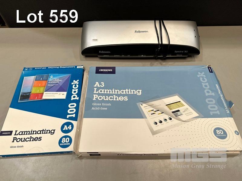 FELLOWES SPECTRA A3 LAMINATOR WITH POUCHES