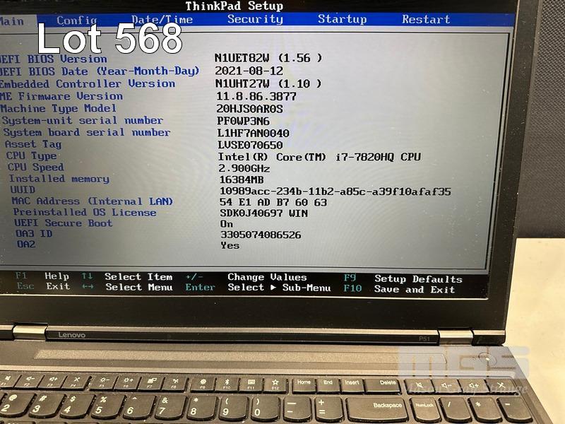 LAPTOP, LENOVO THINKPAD P51 MOBILE WORKSTATION, TYPE 20HJ, CORE i7 7820HQ (7TH GEN) @ 2.9GHz, 16GB DDR4 RAM, 512GB NVMe M.2 SSD, 15.6" WIDESCREEN (1920x1080), 4GB NVIDIA QUADRO M2200 VIDEO, Wi-Fi, BLUETOOTH, WINDOWS 10 PRO INSTALLED (NO POWER SUPPLY) S/N:PF0WP3N6