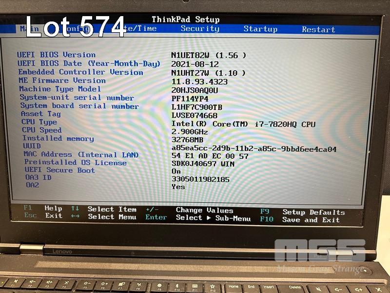 LAPTOP, LENOVO THINKPAD P51 MOBILE WORKSTATION, TYPE 20HJ, CORE i7 7820HQ (7TH GEN) @ 2.9GHz, 32GB DDR4 RAM, 512GB NVMe M.2 SSD, 15.6" WIDESCREEN (1920x1080), 4GB NVIDIA QUADRO M2200 VIDEO, Wi-Fi, BLUETOOTH, WINDOWS 10 PRO INSTALLED (NO POWER SUPPLY) (NOTE: USB PORT DAMAGED, MINOR MARKS ON SCREEN S/N:PF114YP4