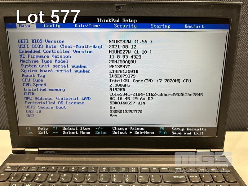 LAPTOP, LENOVO THINKPAD P51 MOBILE WORKSTATION, TYPE 20HJ, CORE i7 7820HQ (7TH GEN) @ 2.9GHz, 8GB DDR4 RAM, 512GB NVMe M.2 SSD, 15.6" WIDESCREEN (1920x1080), 4GB NVIDIA QUADRO M2200 VIDEO, Wi-Fi, BLUETOOTH, WINDOWS 10 PRO INSTALLED (NO POWER SUPPLY) (NOTE: MARKS & SPOTS ON SCREEN) S/N:PF13Y37T