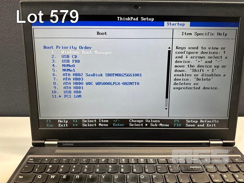 LAPTOP, LENOVO THINKPAD P51 MOBILE WORKSTATION, TYPE 20HJ, CORE i7 7820HQ (7TH GEN) @ 2.9GHz, 16GB DDR4 RAM, 256GB M.2 SSD, 500GB SATA HDD, 15.6" WIDESCREEN (1920x1080), 4GB NVIDIA QUADRO M2200 VIDEO, Wi-Fi, BLUETOOTH, WINDOWS 10 PRO INSTALLED (NO POWER SUPPLY) (NOTE: MARKS & SPOTS ON SCREEN, SMALL CRACK LINE ON CASING) S/N:PF0WP57H