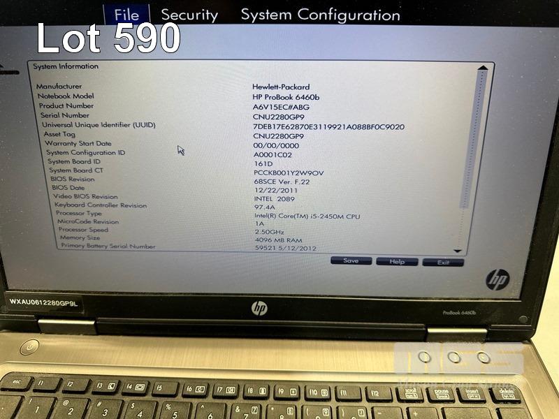2 x LAPTOPS INC. - LAPTOP, HP PROBOOK 6460b, CORE i5 2450M (2ND GEN) @ 2.5GHz, 4GB DDR3 RAM, 500GB SATA HDD WITH POWER SUPPLIES S/N:CNU2280GP9, CNU2379VZH