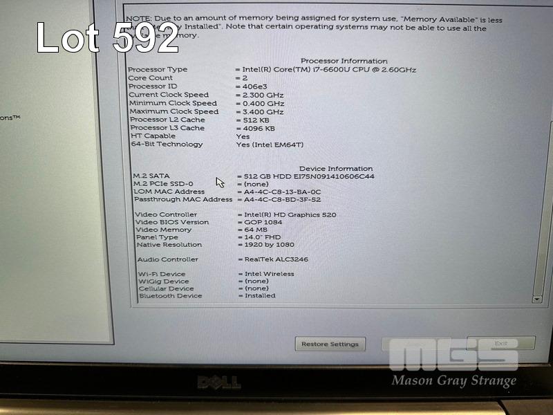 LAPTOP, DELL LATITUDE 7480, CORE i7 6600U (6TH GEN) @ 2.6GHz, 16GB DDR4 RAM, 512GB M.2 SSD, 14" WIDESCREEN (1920x1080), INTEL HD GRAPHICS 520, Wi-Fi, BLUETOOTH, WINDOWS 10 HOME INSTALLED & POWER SUPPLY (NOTE: BATTERY NOT HOLDING CHARGE) S/N:DF079H2