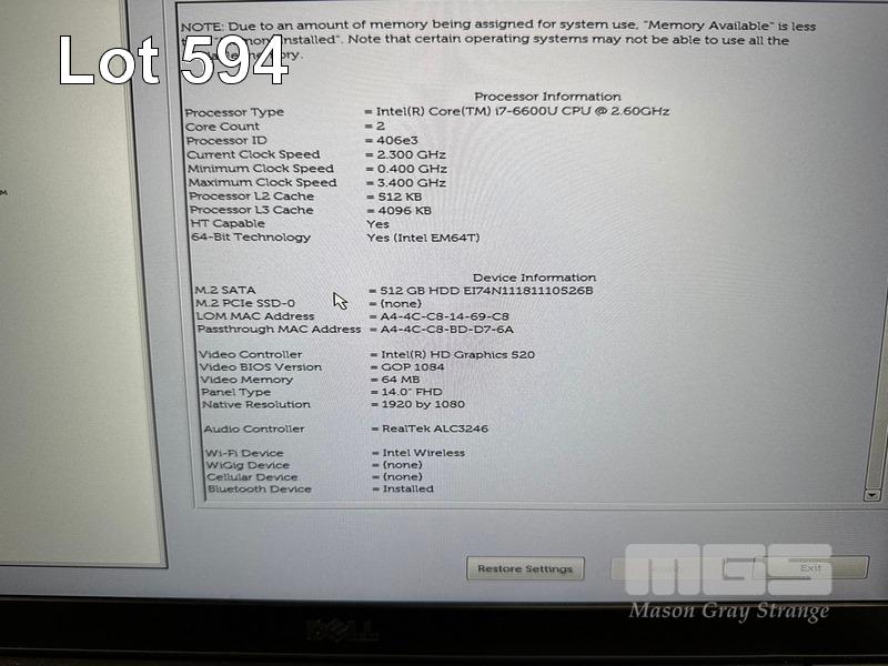 LAPTOP, DELL LATITUDE 7480, CORE i7 6600U (6TH GEN) @ 2.6GHz, 16GB DDR4 RAM, 512GB M.2 SSD, 14" WIDESCREEN (1920x1080), INTEL HD GRAPHICS 520, Wi-Fi, BLUETOOTH, WINDOWS 10 HOME INSTALLED & POWER SUPPLY (NOTE: NO BATTERY) S/N:D57Q9H2