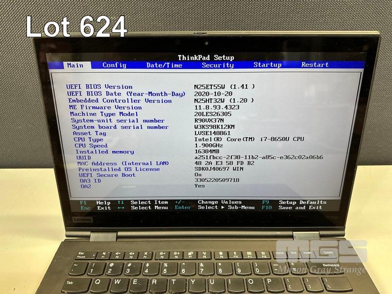 LAPTOP, LENOVO THINKPAD X1 YOGA, TYPE 20LE, CORE i7 8650U (8TH GEN) @ 1.9GHz, 16GB DDR4 RAM, 256GB NVMe M.2 SSD, 14" TOUCHSCREEN (1920x1080), INTEL UHD GRAPHICS, Wi-Fi, BLUETOOTH, WINDOWS 11 PRO INSTALLED (NO USB-C POWER SUPPLY) (NOTE: POOR CONDITION, CASING PEELING, MARKS ON SCREEN) S/N:R90VX37N