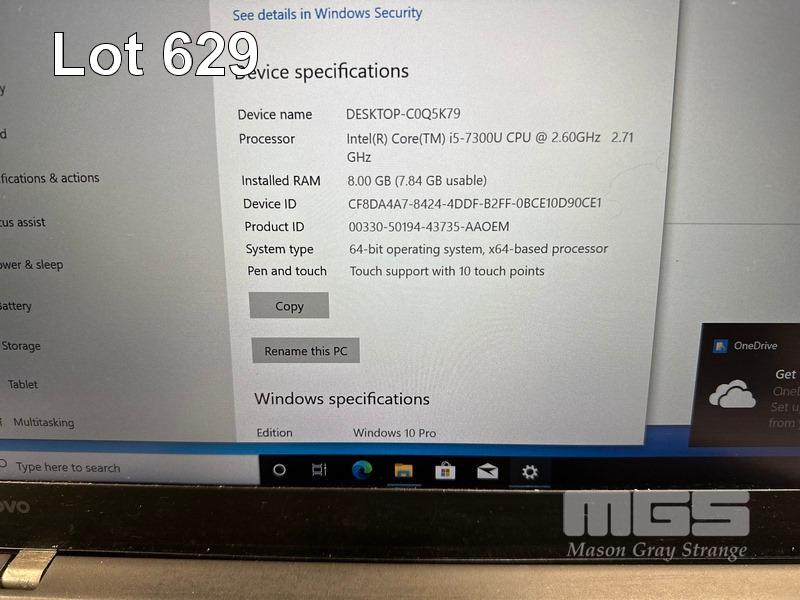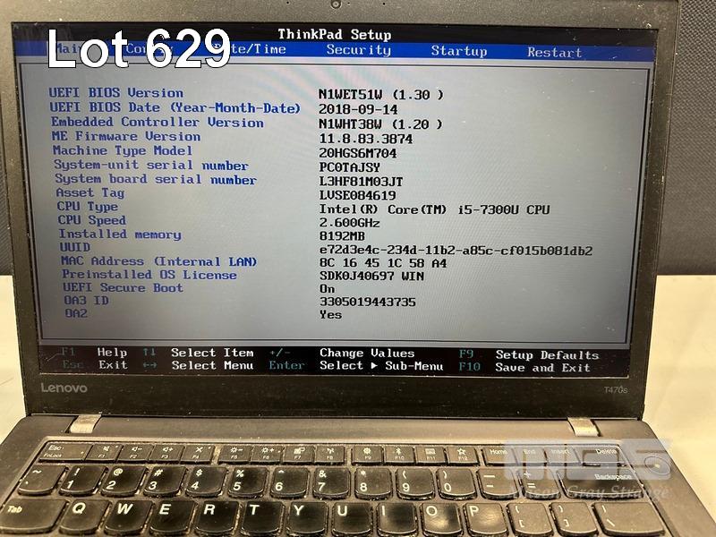 LAPTOP, LENOVO THINKPAD T470s, TYPE 20HG, CORE i5 7300U (7TH GEN) @ 2.6GHz, 8GB DDR4 RAM, 500GB NVMe M.2 SSD, 14" TOUCHSCREEN (1920x1080), INTEL HD VIDEO, Wi-Fi, BLUETOOTH, WINDOWS 10 PRO INSTALLED (NO POWER SUPPLY) (NOTE: POOR CONDITION, BATTERY NOT CHARGING, MARKS ON SCREEN) S/N:PC0TAJSY