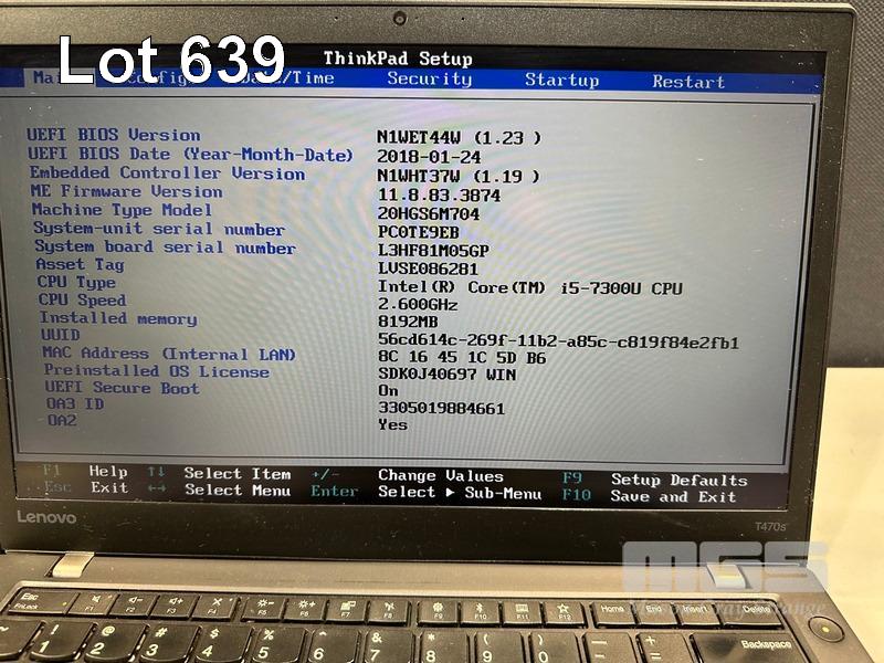 LAPTOP, LENOVO THINKPAD T470s, TYPE 20HG, CORE i5 7300U (7TH GEN) @ 2.6GHz, 8GB DDR4 RAM, 256GB NVMe M.2 SSD, 14" TOUCHSCREEN (1920x1080), INTEL HD VIDEO, Wi-Fi, BLUETOOTH, WINDOWS 10 PRO INSTALLED & POWER SUPPLY (NOTE: MARKS ON SCREEN) S/N:PC0TE9EB