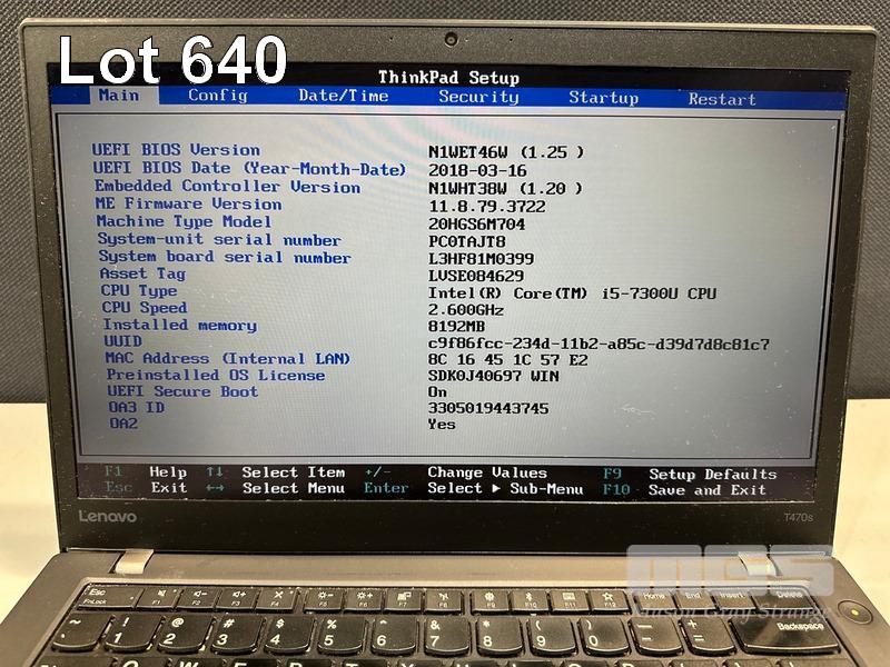 LAPTOP, LENOVO THINKPAD T470s, TYPE 20HG, CORE i5 7300U (7TH GEN) @ 2.6GHz, 8GB DDR4 RAM, 256GB NVMe M.2 SSD, 14" TOUCHSCREEN (1920x1080), INTEL HD VIDEO, Wi-Fi, BLUETOOTH, WINDOWS 10 PRO INSTALLED (NO POWER SUPPLY) (NOTE: KEYBOARD & TOUCHPAD FAULTY, MINOR MARKS ON SCREEN) S/N:PC0TAJT8