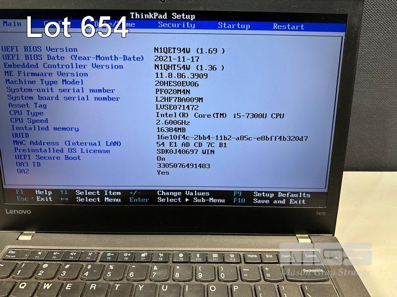LAPTOP, LENOVO THINKPAD T470, TYPE 20HE, CORE i5 7300U (7TH GEN) @ 2.6GHz, 16GB DDR4 RAM, 512GB NVMe M.2 SSD, 14" WIDESCREEN (1920x1080), INTEL HD VIDEO, Wi-Fi, BLUETOOTH, WINDOWS 10 PRO INSTALLED & POWER SUPPLY (NOTE: MARKS & CHIP ON SCREEN) S/N:PF0Z0M4N