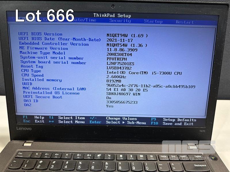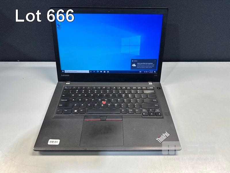 LAPTOP, LENOVO THINKPAD T470, TYPE 20HE, CORE i5 7300U (7TH GEN) @ 2.6GHz, 8GB DDR4 RAM, 256GB NVMe M.2 SSD, 14" WIDESCREEN (1366x768), INTEL HD VIDEO, Wi-Fi, BLUETOOTH, WINDOWS 10 PRO INSTALLED (NO POWER SUPPLY) (NOTE: MINOR MARKS & SPOTS ON SCREEN) S/N:PF0TREPH
