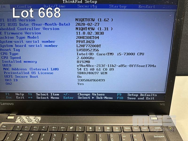 LAPTOP, LENOVO THINKPAD T470, TYPE 20HE, CORE i5 7300U (7TH GEN) @ 2.6GHz, 8GB DDR4 RAM, 256GB NVMe M.2 SSD, 14" WIDESCREEN (1366x768), INTEL HD VIDEO, Wi-Fi, BLUETOOTH, WINDOWS 10 PRO INSTALLED & POWER SUPPLY (NOTE: MINOR MARKS ON SCREEN) S/N:PF0TJHZD