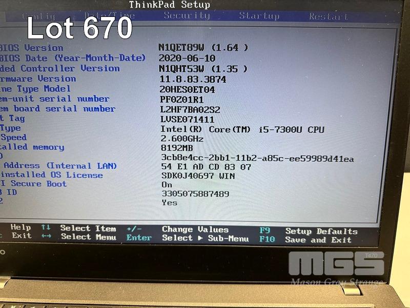 LAPTOP, LENOVO THINKPAD T470, TYPE 20HE, CORE i5 7300U (7TH GEN) @ 2.6GHz, 8GB DDR4 RAM, 512GB NVMe M.2 SSD, 14" WIDESCREEN (1920x1080), INTEL HD VIDEO, Wi-Fi, BLUETOOTH, WINDOWS 10 PRO INSTALLED & POWER SUPPLY (NOTE: TOUHCPAD FAULTY, BATTERY NOT CHARGING, MINOR MARKS ON SCREEN) S/N:PF0Z01R1