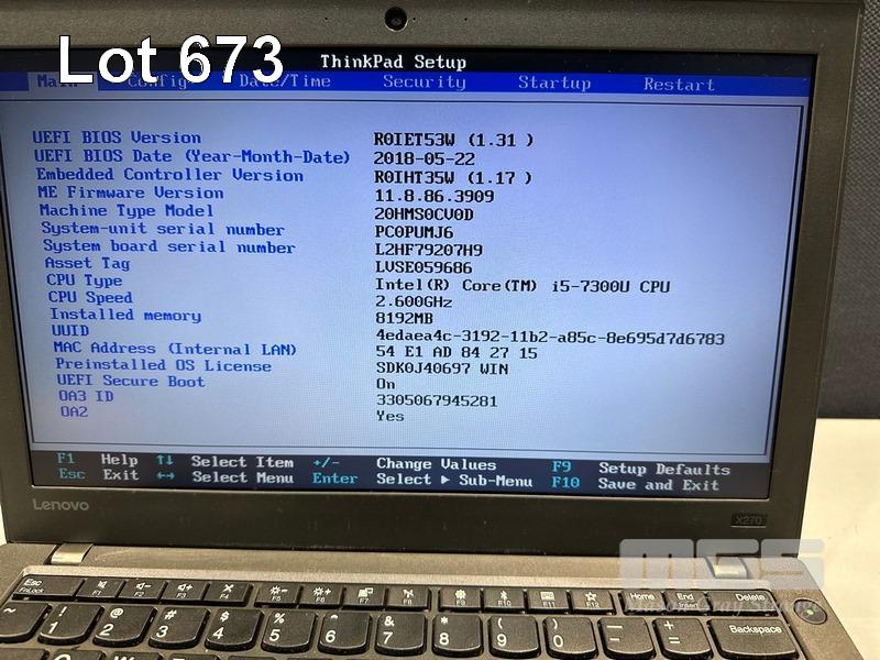 LAPTOP, LENOVO THINKPAD X270, TYPE 20HM, CORE i5 7300U (7TH GEN) @ 2.6GHz, 8GB DDR4 RAM, 256GB NVMe SSD, 12.5" WIDESCREEN (1366x768), INTEL HD VIDEO, Wi-Fi, BLUETOOTH, WINDOWS 10 PRO INSTALLED & POWER SUPPLY S/N:PC0PUMJ6
