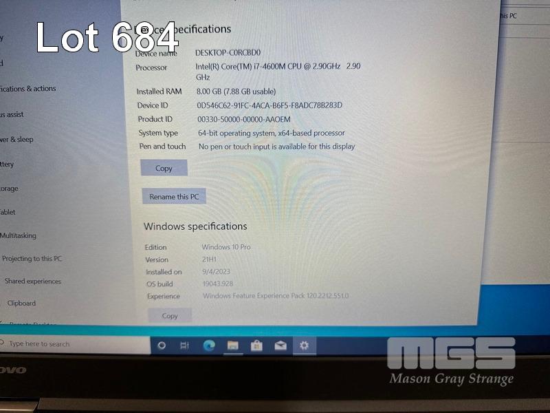 LAPTOP, LENOVO THINKPAD W541, TYPE 20EG, CORE i7 4600M (4TH GEN) @ 2.9GHz, 8GB DDR3 RAM, 256GB SSD, DVD-RW, 15.6" WIDESCREEN (1920x1080), INTEL HD VIDEO, 2GB NVIDIA QUADRO K1100M VIDEO, Wi-Fi, BLUETOOTH, WINDOWS 10 PRO INSTALLED & POWER SUPPLY S/N:R90J25GW