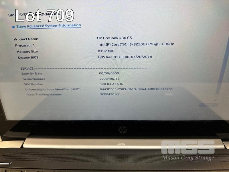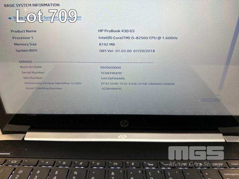 5 x LAPTOPS INC. - HP PROBOOK 430 G5, CORE i5 8250U @ 1.6GHz, 8GB RAM, NO HDD (WITH POWER SUPPLIES) (NOTE: SOME WITH MINOR CASING DAMAGE)