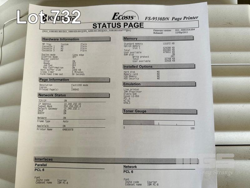 PRINTER, KYOCERA FS-9530DN LASER, 199,042 PAGES (TEST PAGE ATTACHED)