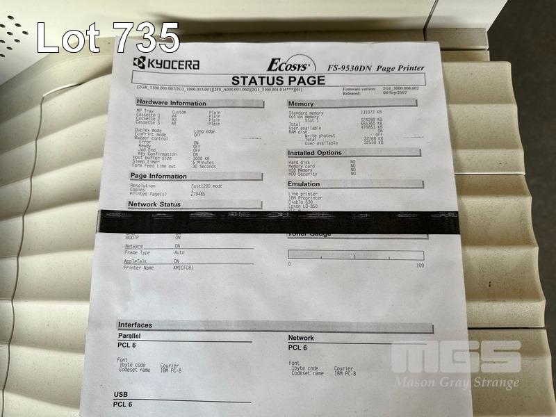 PRINTER, KYOCERA FS-9530DN LASER, 279,485 PAGES (TEST PAGE ATTACHED - POOR)