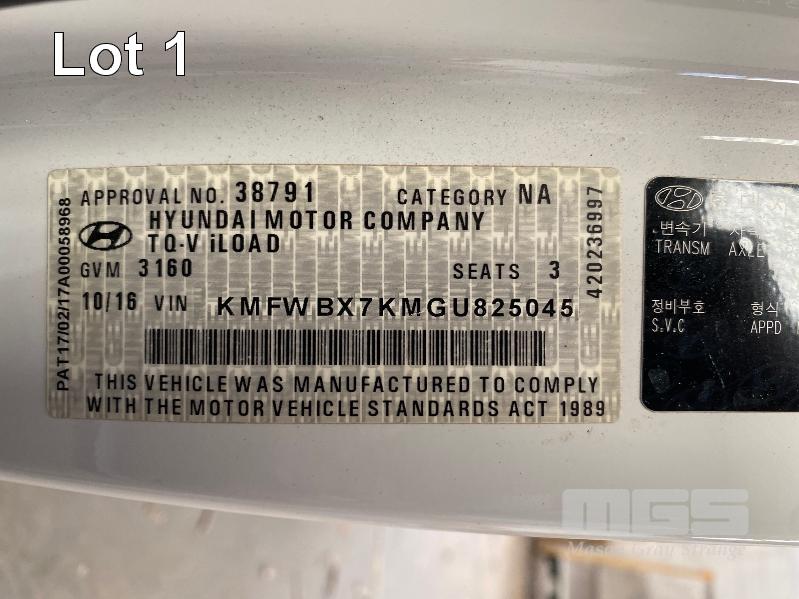 2016 HYUNDIA iLOAD MY16 VAN RWD REG: S508BPG (SA) VIN: KMFWBX7KMGU825045 ODO: 134,888 2.5 TURBO, AUTO, DIESEL, WHITE DUCO, 5 DOORS, 3 SEAT, RWD ABS, AIR BAG, AIR CON, BLUETOOTH, CARGO BARRIER, CENTRAL LOCKING, CRUISE CONTROL, POWER STEERING, POWER WINDOWS, ROOF RACKS, SPARE WHEEL, TOOL BOX, TRACTION CONTROL, LOCKABLE SLIDE OUT TOOL BOX, TOW PACK INSTALLED (NO TOWBALL) (WITH PAPERS, WITH 2 KEY/S, WITH OWNER'S MANUAL, WITH SERVICE BOOKS)