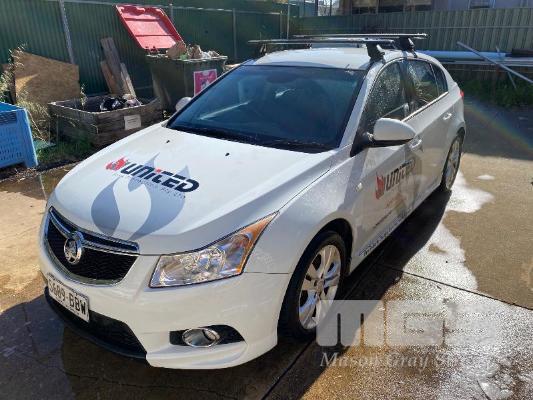 2014 HOLDEN CRUZE HATCHBACK FWD REG: S689BBW (SA) VIN: 6G1PE6EN6EL987857 ODO: 175,051 AUTO, PETROL, WHITE DUCO, 5 DOORS, 5 SEAT, FWD ABS, AIR BAG, AIR CON, ALLOY WHEELS, BLUETOOTH, CD PLAYER, CENTRAL LOCKING, CRUISE CONTROL, IMMOBILISER, LEATHER TRIM, POWER WINDOWS, ROOF RACKS, SPARE WHEEL, TRACTION CONTROL (WITH PAPERS, WITH 1 KEY/S, WITH OWNER'S MANUAL, WITH SERVICE BOOKS)