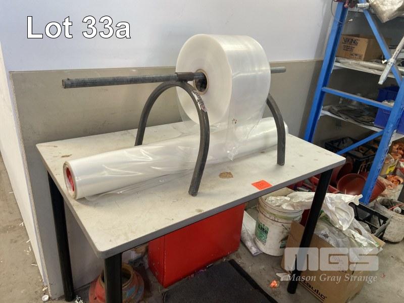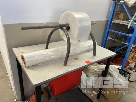 2 x ROLLS PLASTIC WRAPPING, & PACKING TABLE 1100 x 800mm