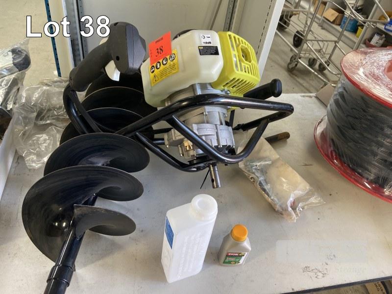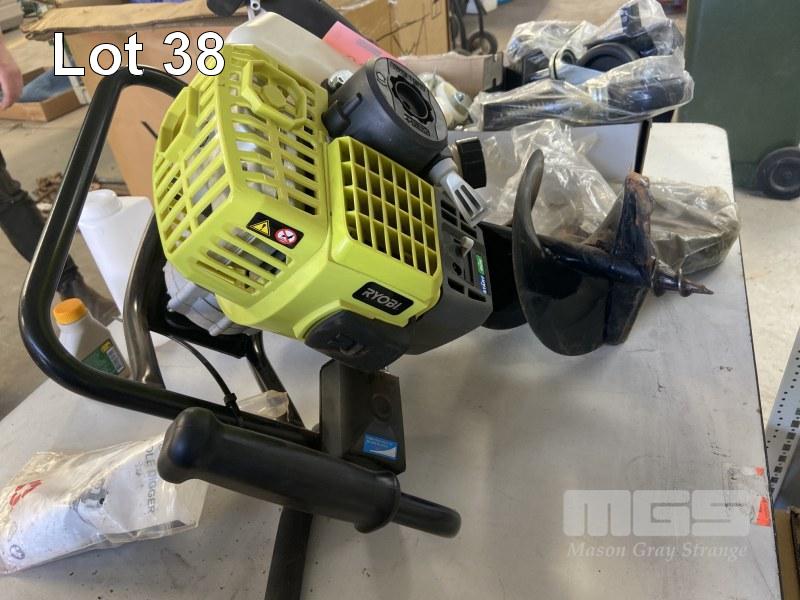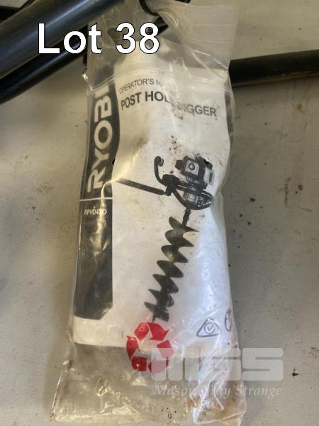 RYOBI PETROL AUGER, MODEL: RPHD430, WITH BOOKS & 200mm AUGER BIT