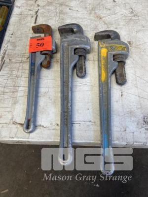3 x RIGID STILSON PIPE WRENCHES, 2 x 18" 1 x 14"