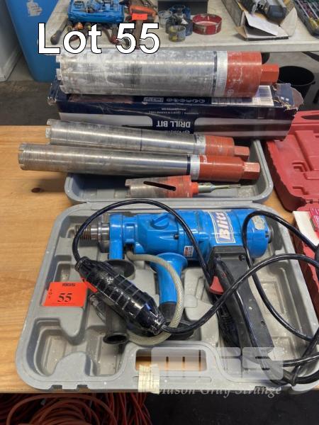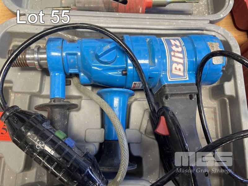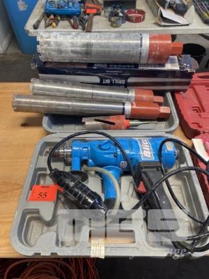 BLITZ DIAMOND CORE DRILL, MODEL: Z1Z-CF02-80, 240v, IN CARRY CASE, WITH 3 x HUSQVARNA CORE DRILL BITS, 65mm, 82mm, 102mm
