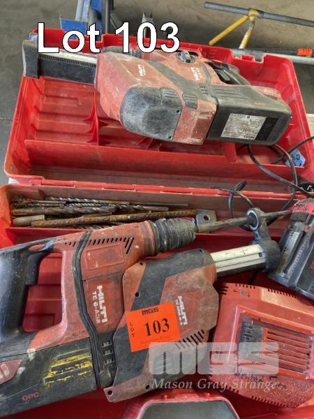 HILTI HAMMER DRILL MODEL: TE 6-A36 WITH HILTI MODEL: TE DRS-6-A ATTACHMENT WITH 2 x 36v 3.0Ah BATTERIES, CHARGER & CARRY CASE PLUS SPARE HILTI HAMMER DRILL MODEL: TE 6-A36 (ALL FAULTS)