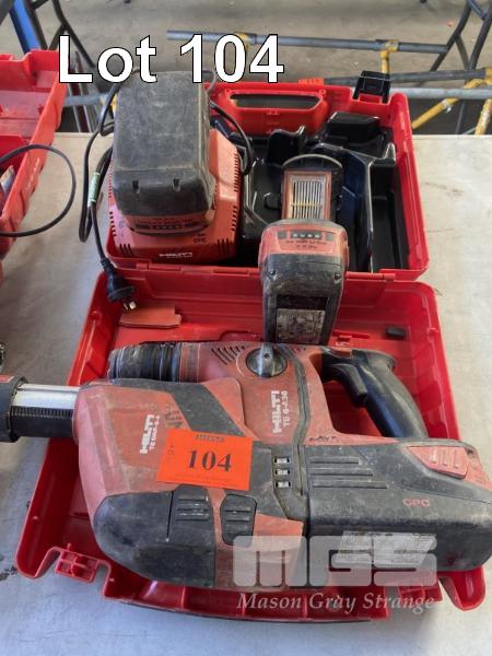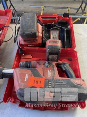 HILTI HAMMER DRILL MODEL: TE 6-A36 WITH HILTI MODEL: TE DRS-6-A ATTACHMENT WITH 2 x 36v 3.0Ah BATTERIES, CHARGER & CARRY CASE