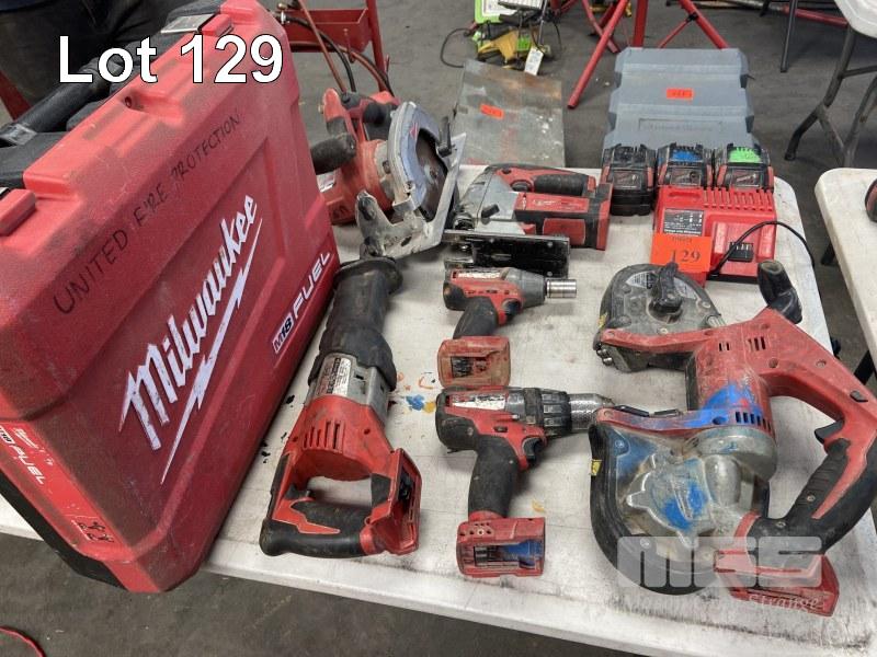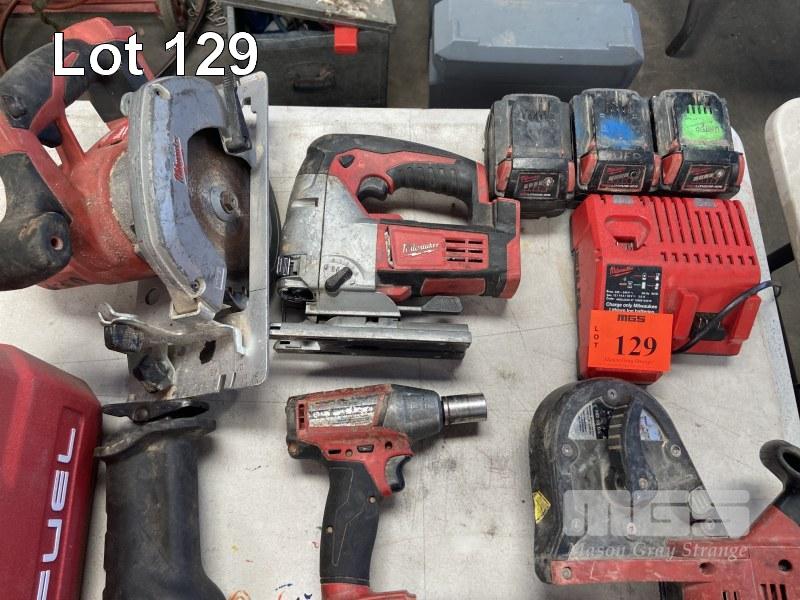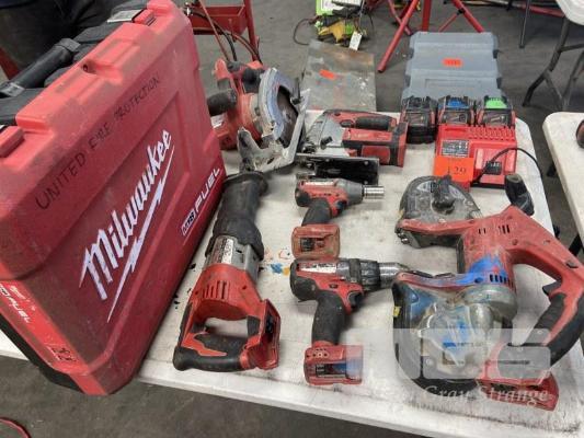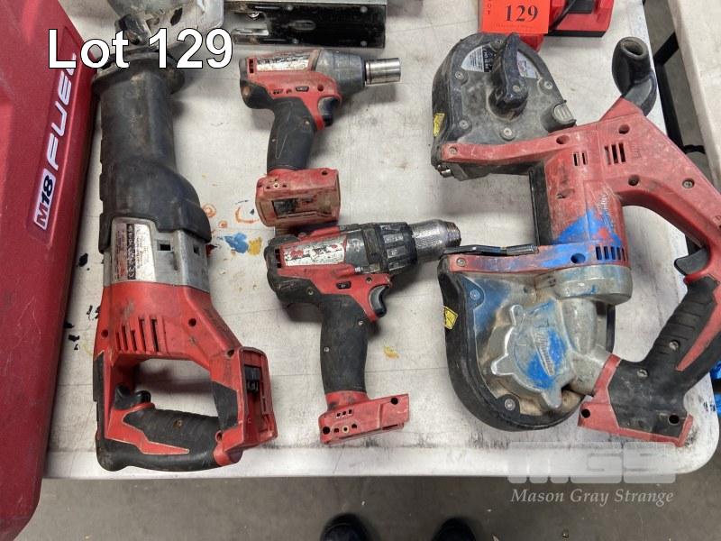 MILWAUKEE 18v POWER TOOL SET! JIGSAW, RATTLE GUN, RECIPRO SAW, DRILL, CIRCULAR SAW, BANDSAW 1 x 5.0Ah BATTERY, 1 x 4.0Ah BATTERY, 1 x 3.0Ah BATTERIES, CHARGER & 1 x CARRY CASE (BUYER TO INSPECT)