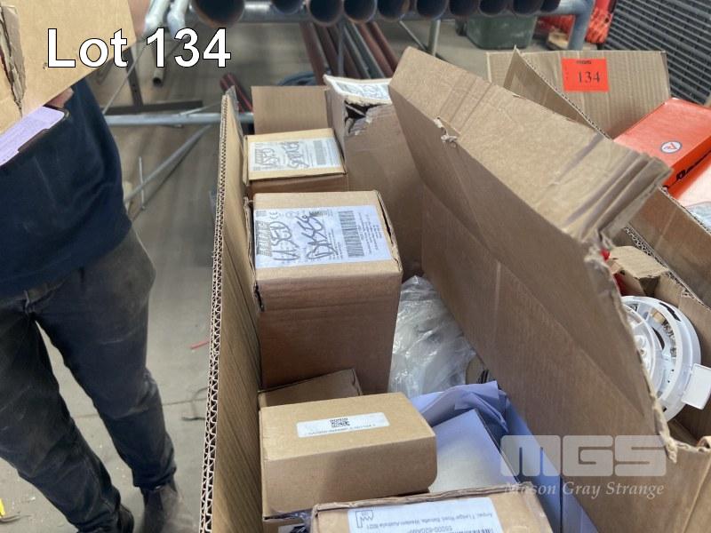 2 x CARTONS FIRE SAFETY EQUIPMENT & HARDWARE: EMERGECNY CALL POINTS, SMOKE DETECTORS, EMERGENCY LIGHTS, AMPAC SWITCH TERMINALS, DYNA CLIP ELECTRICAL CLIPS, CABLE TIE HOLDERS ETC.