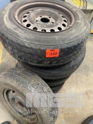4 x HOLDEN STEEL RIMS & TYRES, 5 STUD, 205/70 R15 LT, TYRES, PLUS 1 x 5 STUD TRAILER SPARE