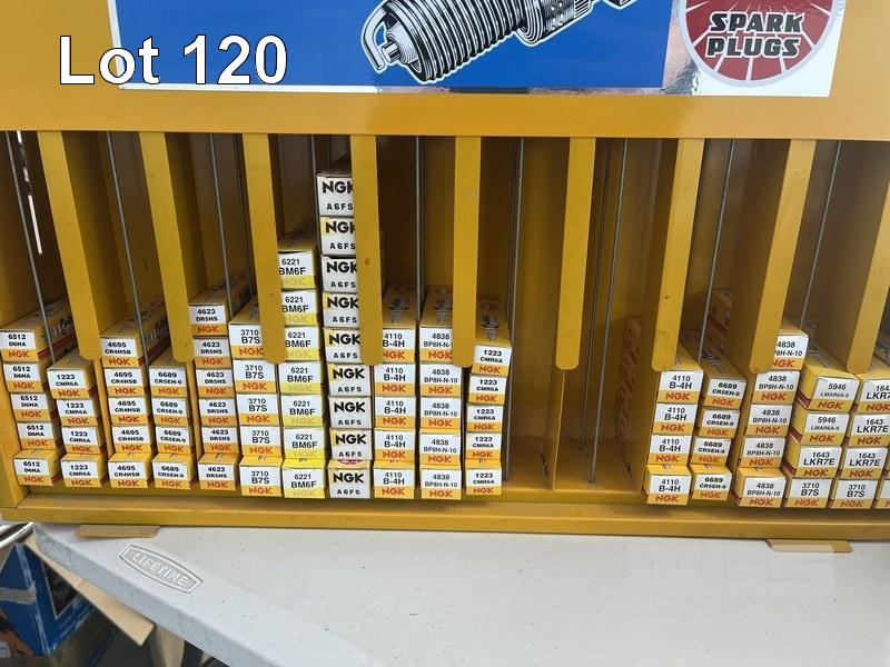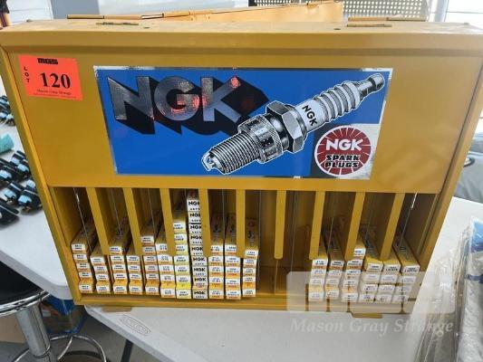 NGK SPARK PLUGS, WALL MOUNT RACK AND STOCK.