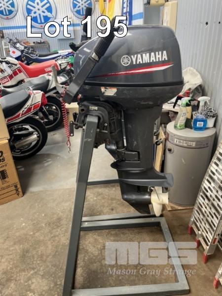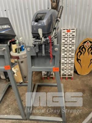YAMAHA 15HP OUTBOARD 2 STROKE WITH HAND CONTROL, COVER & STAND