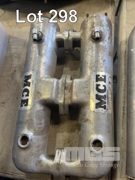 PAIR ALLOY MARINE MANIFOLDS, CHEV V8 & OIL DRAINER